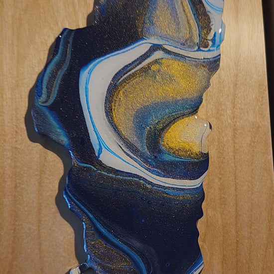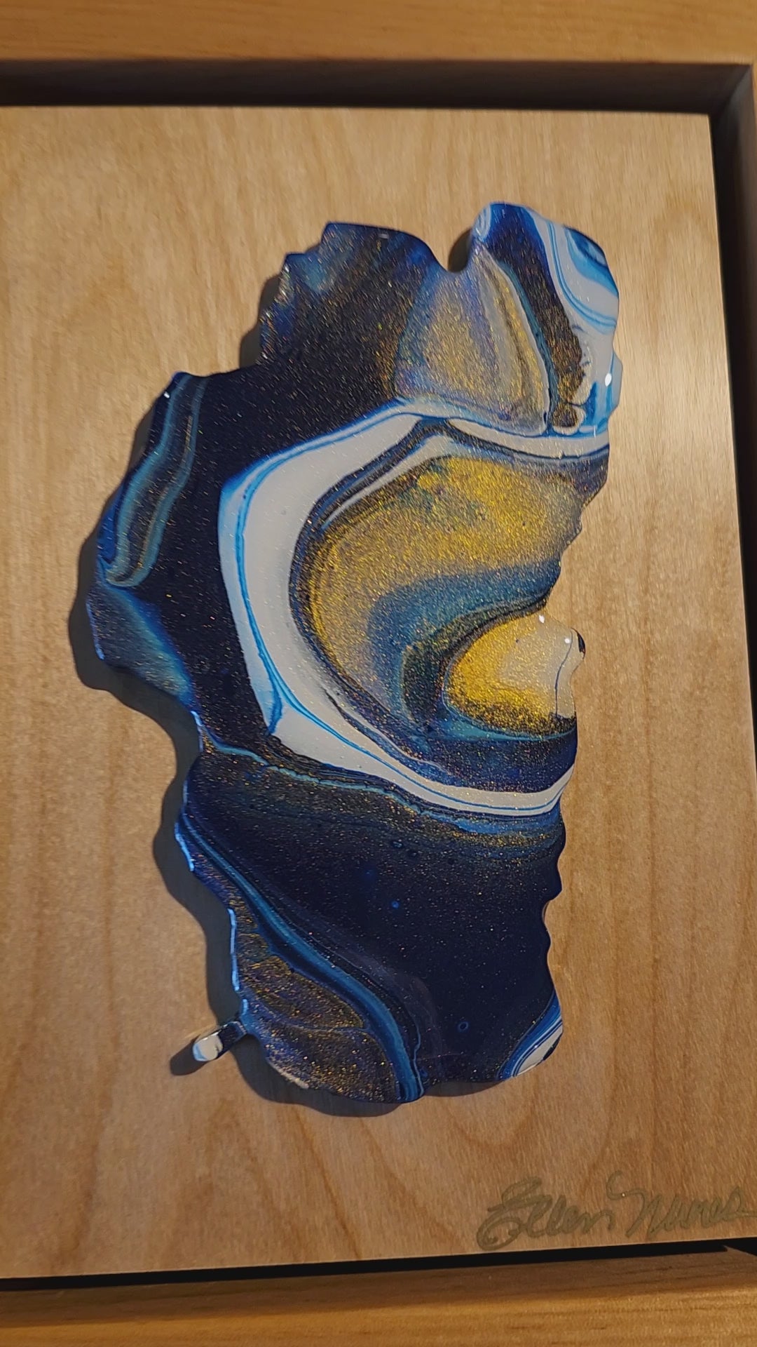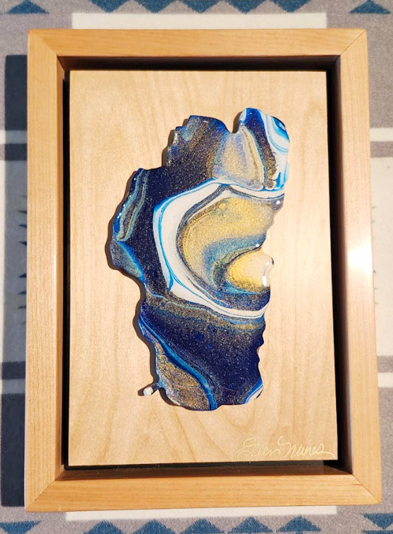 The Jewel of the Sierra Collection is a series of framed paintings of Lake Tahoe, mounted on birch and framed in Alder. Jewel of the Sierra no. 142 measures 7 x 9" and is painstakingly made by my husband Randy and I. I create an original painting and finish it with resin before I mount it onto the birch panel. Randy is a retired firefighter from Tahoe Douglas Fire District and loves woodworking. He makes all of my frames, panels, and Lake Tahoe substrates (Panels to paint on). Each piece in the collection is signed and numbered.